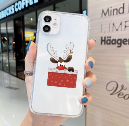Husa de protectie compatibila cu telefoane Samsung Galaxy S21, din silicon TPU. Model Craciun, Ren cu Cadou.